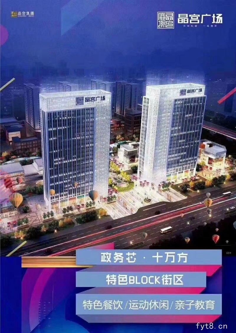晶宫广场地处临泉政务区内,未来商圈主力发展区域,拥有便捷的交通体系、完善的商业、医疗、生活、学校等市政配套。晶宫广场集商业、酒店、办公/商务公寓于一体。项目占地面积约50亩,分为北区和南区两个组团。项目由约3.4万方沿街商铺、8700方酒店以及994户办公/商务公寓组成,总建面约10万方。