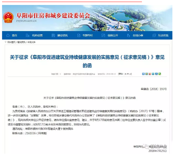 阜阳市关于促进建筑业持续健康发展的实施意见(征求意见稿)