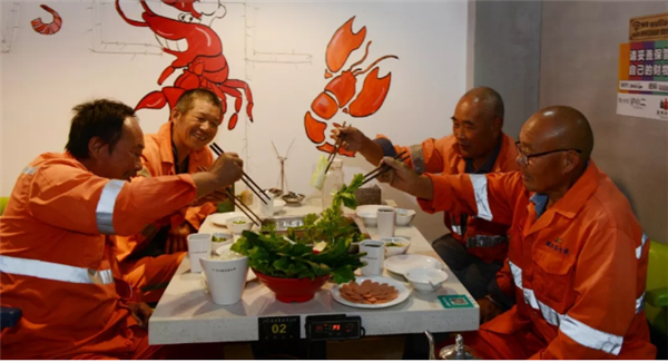 63岁的环卫工人赵子清和同事边吃火锅,边感叹“今天真热闹,就像吃喜宴一样”。据他介绍,自己每天天不亮就起来,顾不上回家吃饭,就带着馒头和酱豆、喝点开水,只有晚上回家才能吃一顿正常的饭。