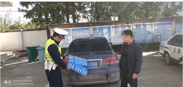 2018年11月9日10时许,阜阳市交警二大队宁老庄交警中队民警通过缉查布控系统预警发现,有一辆涉嫌报废的轿车正在路上行驶。