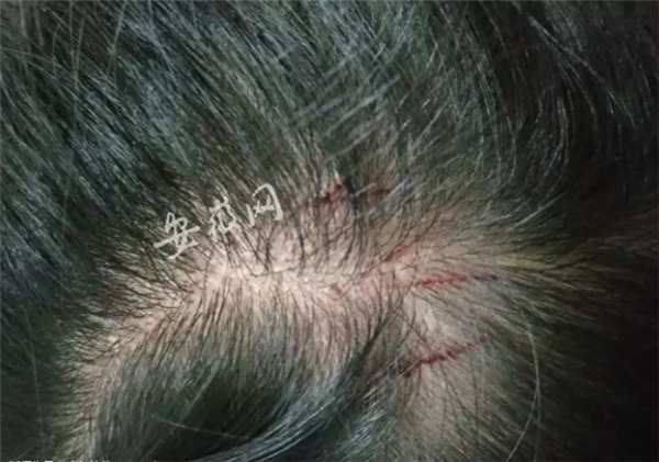 张女士拍的女儿头上的伤痕