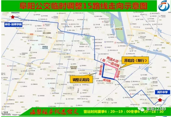 1、线路具体走向:鸿升中学原线至—新安路(原:新安大道)—淮河路—颍上路—西湖大道(原:一道河路)—至原线。