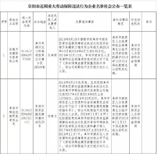 11月28日阜阳市人社局公布了近期重大劳动保障违法行为企业名单5家企业因到期拒不支付拖欠的民工工资被曝光被各界广泛关注的安徽好梦圆食品有限公司名列其中另据阜阳市劳动保障监察执法支队队长徐锐介绍,接下来