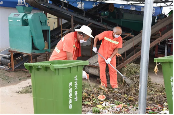 上午10点,界首市光武镇黄寨村环卫工黄金学,骑着电动三轮车来到村东头的生活垃圾处理点,将从各家各户收集上来的垃圾分类堆在地上。这已是他两天中送来的第五车垃圾了。随后,几名环卫工忙碌起来,将收集来的垃圾