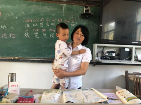 相信很多人看到下面这张照片会很疑惑,为何老师会抱着孩子上课?其实这位老师抱的是班里的学生,今年刚上幼儿园中班,因为这个学校只有一个老师一个班,这个班总共11个学生,却有幼儿园中班、大班、小学一二三年级