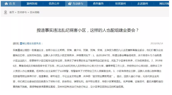 近日,阜阳城南置诚公馆小区一名普通业主反映:目前小区有几人正在重新筹备业委会,“他们打着为业主服务的口号,实则另有目的。”该业主反映的详细情况如下:1、自2018年7月,所谓业委会筹备组成员,多次带领